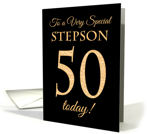 | Title: | Chic 50th Birthday for Special Stepson, Gold Effect on Black |