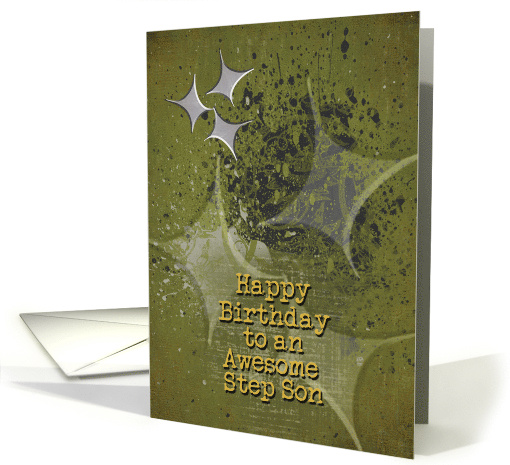 | Artist Notes: | Send Happy Birthday greetings to an Awesome Step Son done in a masculine style with green and black grunge effects. Silver stars float above a digitally textured grungy background. |