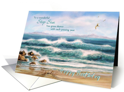 | Title: | Happy Birthday to Step Son Seascape with Waves and Seagulls |