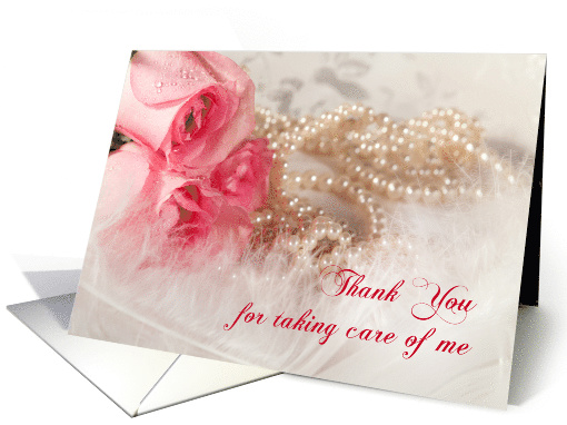 Say 'Thank you' to the one who takes care of you. Let your caregiver know how much you appreciate them with a lovely card featuring roses and pearls.