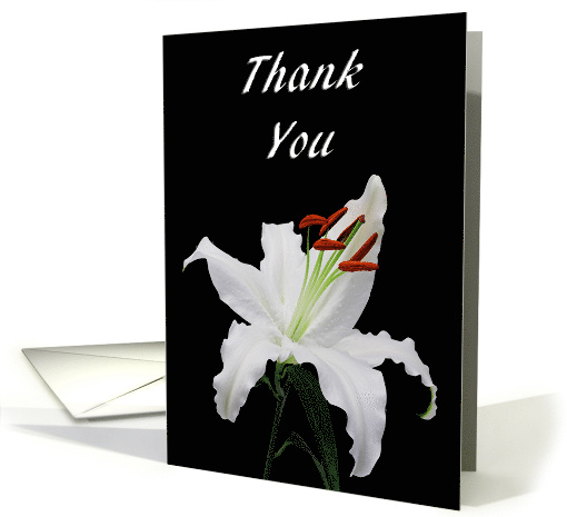 A very restrained and elegant lily. Send thanks for funeral attendance or sympathy wishes with this beautiful card. You can change the inside verse to anything you wish.