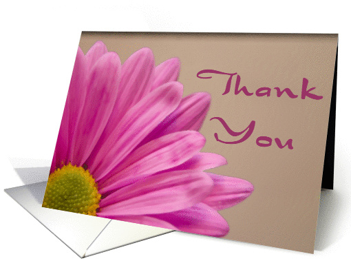 Say thanks and show your gratitude and appreciation with the pretty Pink Daisy Flower Thank You Card. Customize it with your own personal message inside. This cute custom thank you note features a digitally painted floral photograph of a pink daisy flower blossom on a tan background.