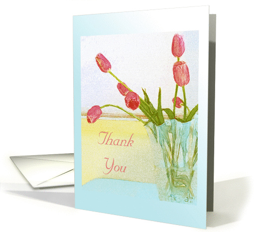 My Smiling Heart Thanks You, Cheery Rosy Tulips in Vase
