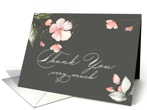 Thank You card featuring pink flowers and gold effect confetti.
