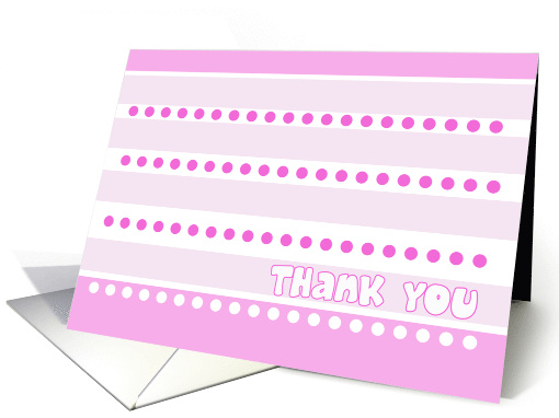 Artist Notes: | A simple and lovely thank you card for a baby shower with rows of pink dots and softer pink lines. Text at the bottom reads "Thank you" in a fun cartoonish font |