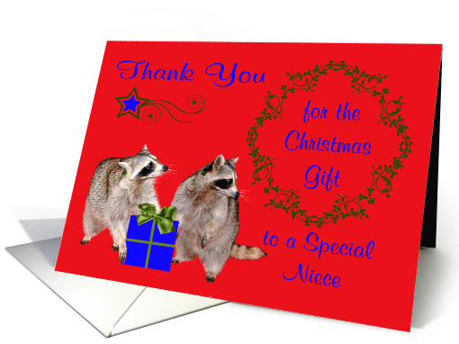| Title: | Thank You for the Christmas Gift to Niece, cute raccoons with present |
