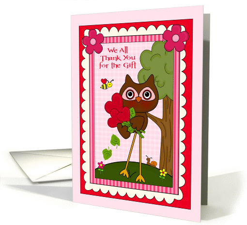 | Title: | Thank You for the Gift from All Of Us, cute owl holding heart flowers |