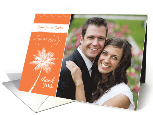 | Title: | Thank You for Wedding Gift Orange with Palm Tree Custom Photo |