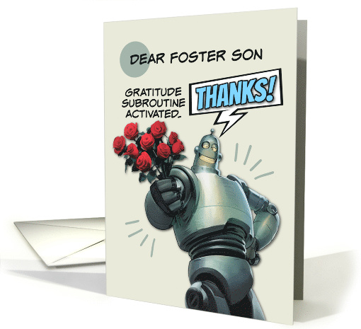 Title: Foster Son Thank You Robot with Bouquet of Roses