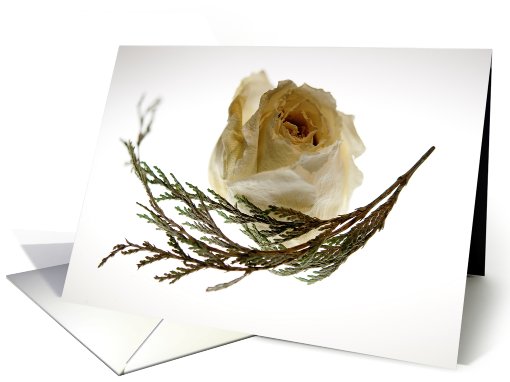 Your note of thanks will be joyfully received with this classically beautiful dried white rose card!