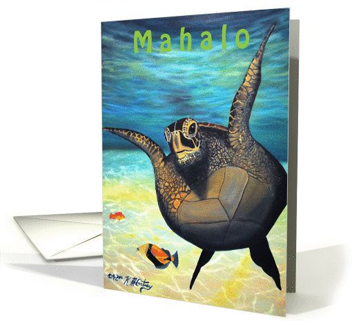 Happy Honu Green Sea Turtle - Thank you - Mahalo