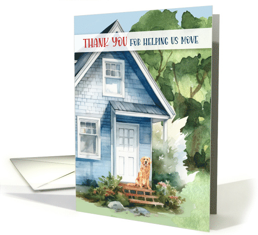 | Title: | Helping Us Move Thank You Blue House and Golden Retriever |