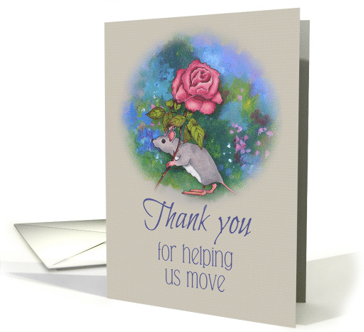 | Title: | Thank You For Helping Us Move, Mouse Carrying Large Pink Rose |