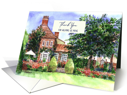 | Artist Notes: | Based on watercolor painting by myself, Farida Greenfield of Manor House in Heslington, York, England. A stunning traditional British house and beautiful garden around it with colorful flowers, shrubs and green trees inside enclosure of brick wall, an idyllic peaceful place. The card is designed for Thank You for Helping us Move. |