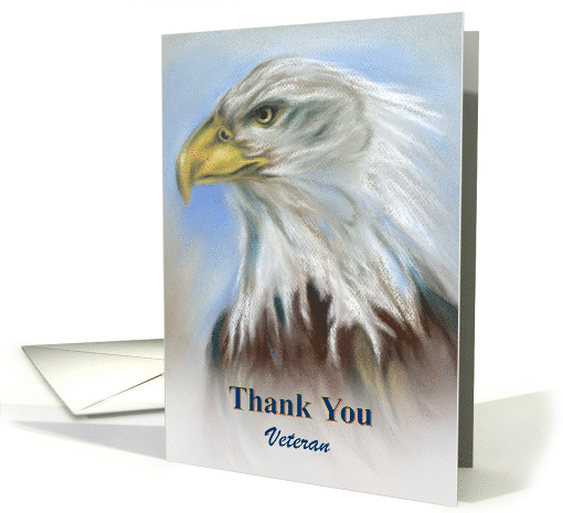 | Artist Notes: | Say ‘thank you’ to a US military veteran with this easy to customize card featuring the portrait of a majestic bald eagle, symbol of the United States of America, created in soft pastel colors. |