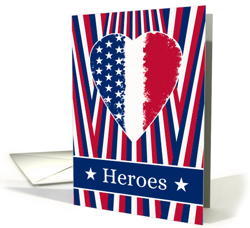 Artist Notes: | Patriotic military service Thank You greeting card with a heroes theme. Card is to recognize military service for a veteran. Red, white, and blue colors on stripes and a large heart. United States flag elements are featured on the card. Personalize the inside as you like before purchase. |