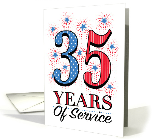Artist Notes: | Blue stars bursting like fireworks behind the number 35 signify a stellar 35 years of service. Send a greeting recognizing the accomplishment. İMindy Pierce |