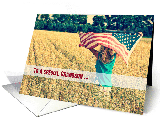 | Title: | Military thank you to Grandson-girl with American flag in a field |