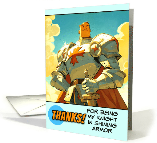 | Artist Notes: | A knight in shining armor with his hand on his broad sword and the text "Thanks! for being my knight in shining armor" A fun design you can sent to someone special to show your appreciation and thanks. |