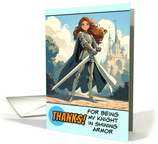 | Artist Notes: | A knight in shining armor with a broad sword in their hands, the fairytale castle in the background, and the text "Thanks! for being my knight in shining armor". A fun design to send to someone special to show your appreciation and thanks. |