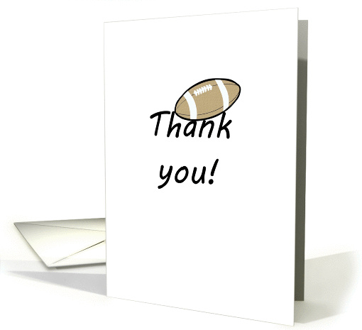 Cartoon sketch of a rugby ball resting on the words 'Thank you!' The inside of the card has been left blank.