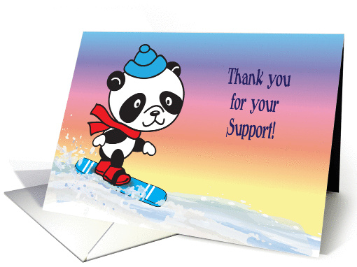 | Artist Notes: | This is a thank you card for supporting snowboarding, featuring a panda on a snowboard. You can change the inside message at checkout, if you wish. 122911 |