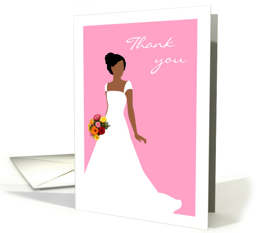 | Artist Notes: | Beautiful African American bride pink thank you card. |