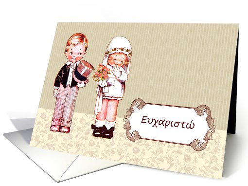 Greek Wedding Thank You Card. Vintage Bride and Groom