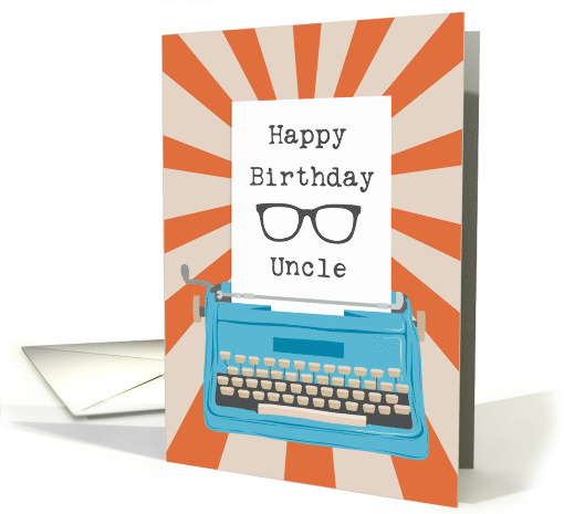 | Title: | Happy Birthday Uncle with Typewriter Glasses Silhouette & Sunburst |