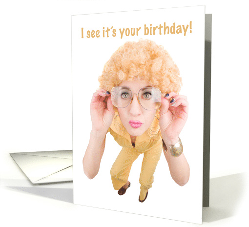 | Artist Notes: | A funny birthday day card with a 70's disco queen looking through her big glasses and saying "I see it's your birthday!" |