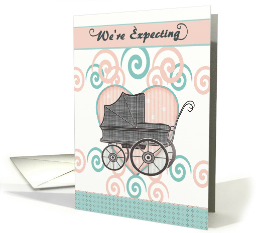 | Title: | We're Expecting Baby with Carriage, Swirls, Teal and Peach |