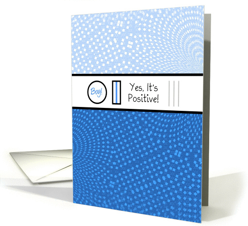 | Artist Notes: | Ready to announce the happy news? Tell your family and friends you are pregnant with a baby boy with this 'We're Expecting' announcement card with a baby blue image of a positive pregnancy test with two lines. Front reads: Yes, it's Positive! By: Photography TK Designs |