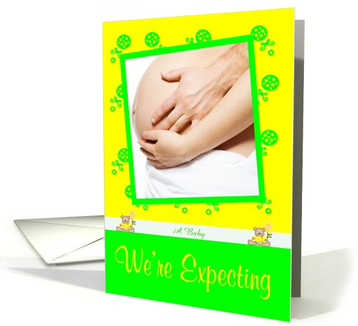 | Title: | We're Expecting Photo Card, greem rattles with a love bear |
