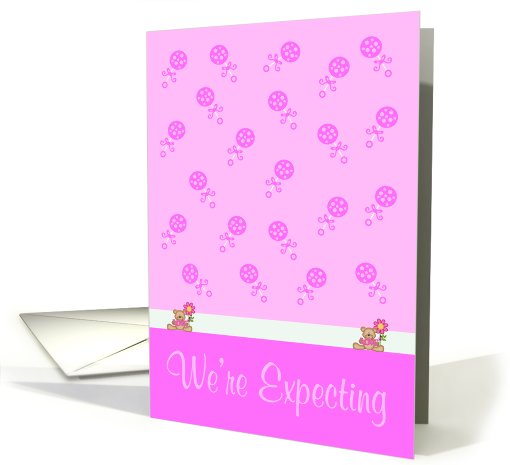 | Title: | We're Expecting A Girl, Pink rattles with a love bear |