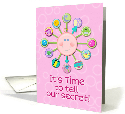 | Artist Notes: | Tell everyone your secret that you are expecting a new baby girl with this fun design that resembles a clock with baby item icons and a cute baby in the middle.Original digital art design by Betsy Bush for Dragonfire Graphics |
