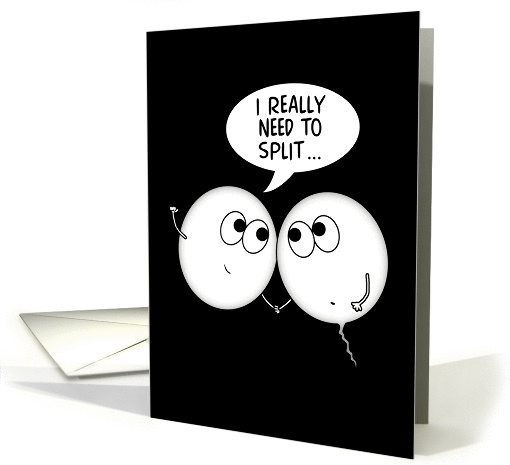 | Artist Notes: | ©Christie Black.Egg and sperm characters hold hands as the egg's caption reads "I really need to split" in this fun and unique card to announce your pregnancy of identical twins. |