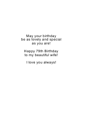 A pink vintage typewriter surrounded by flowers and leaves with a chickadee bird perched on the typewriter. A piece of paper from the typewriter has the handwritten words Happy 79th Birthday Wife. A lovely birthday card for your wife turning 79!