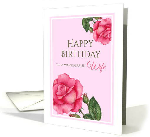 For Wife on Birthday Watercolor Pink Rose Illustration