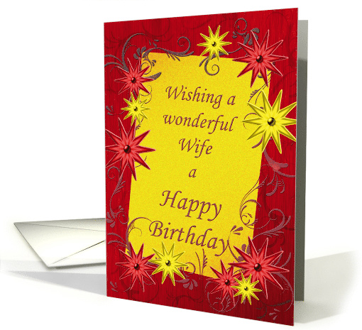 A sparkling bright birthday card with red and yellow stars. A lively card for the young at heart. A lovely birthday card for a wife.