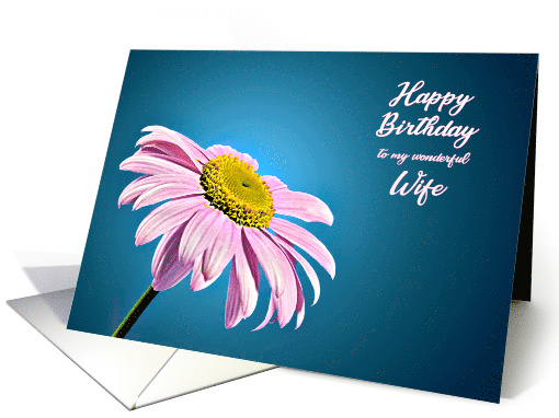 A birthday card for your wife. A beautiful pink daisy smiling at the sun, with 'Happy Birthday' written in pink to match the flower. A lovely birthday card for the lady in your life.