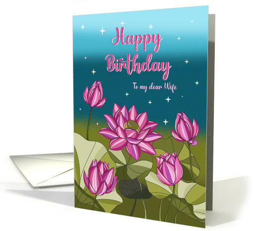 Happy Birthday to Wife Pink Lotus with Leaves and Stars