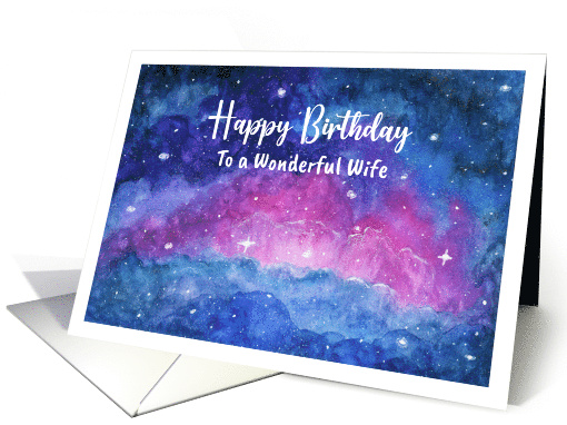 Here is a wonderful birthday card that showcases a watercolor painting of space, vibrantly colored nebula clouds, and twinkling stars to express to your Wife how much you love and appreciate her.